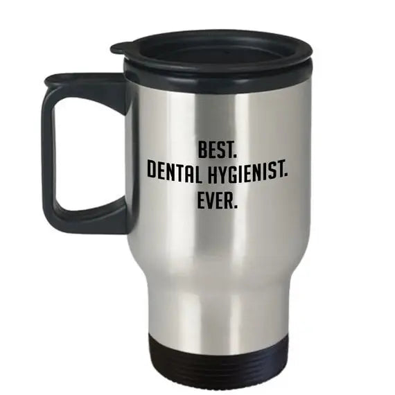 This Travel Mug is stylish, can hold 14 oz worth of liquid and come with an easy-to-grip handle. It is sturdy and durable, with tapered bottom that can fit perfectly in a cup holder.