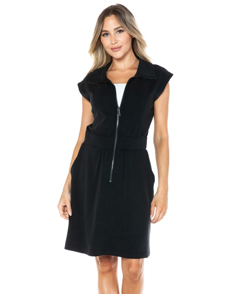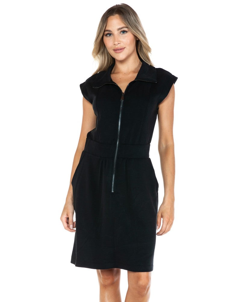 This versatile Ariella Zipper Detail Scuba Dress features a sleek and modern design with a functional zipper detail. Its scuba material provides comfort and stretch for a perfect fit. Dress it up or down for any occasion.