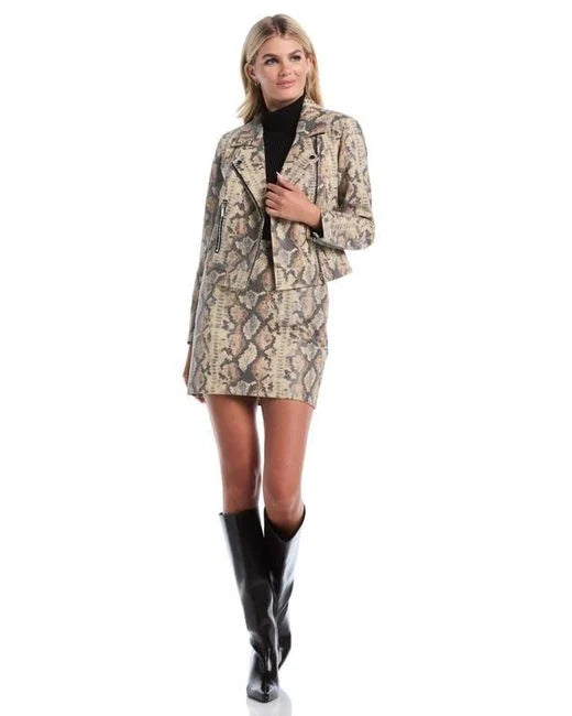 Turn heads in this miniskirt crafted from snake-embossed faux leather.