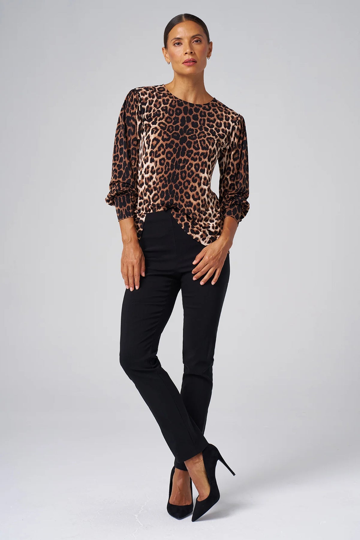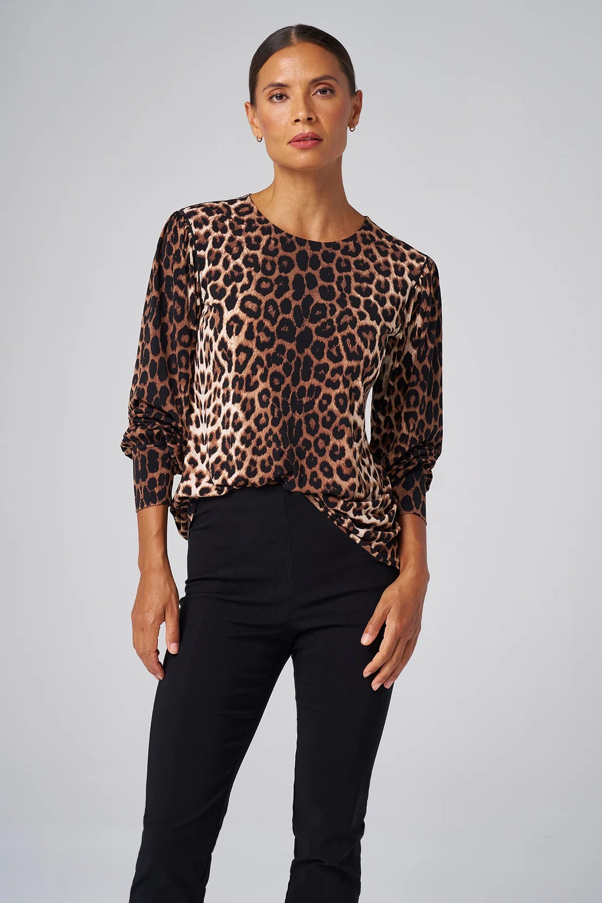 Experience the ultimate blend of comfort and style with the Franne Golde Monro Stretch Blouse in a fierce leopard print. Made with the finest quality stretch fabric, this blouse offers a flattering fit that moves with you. Perfect for any occasion, elevate your wardrobe with this must-have piece.