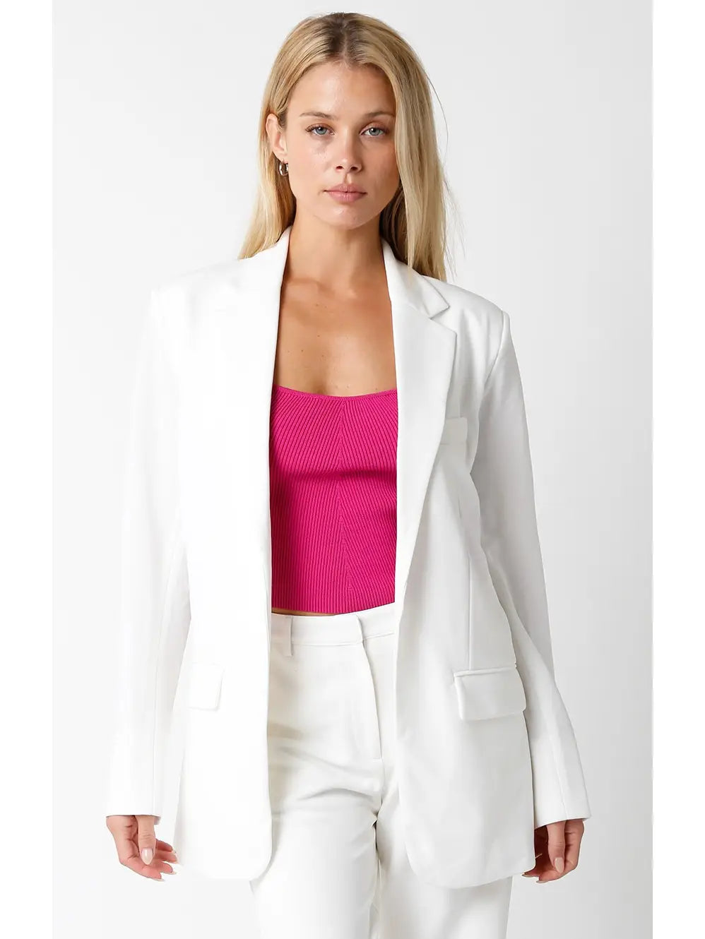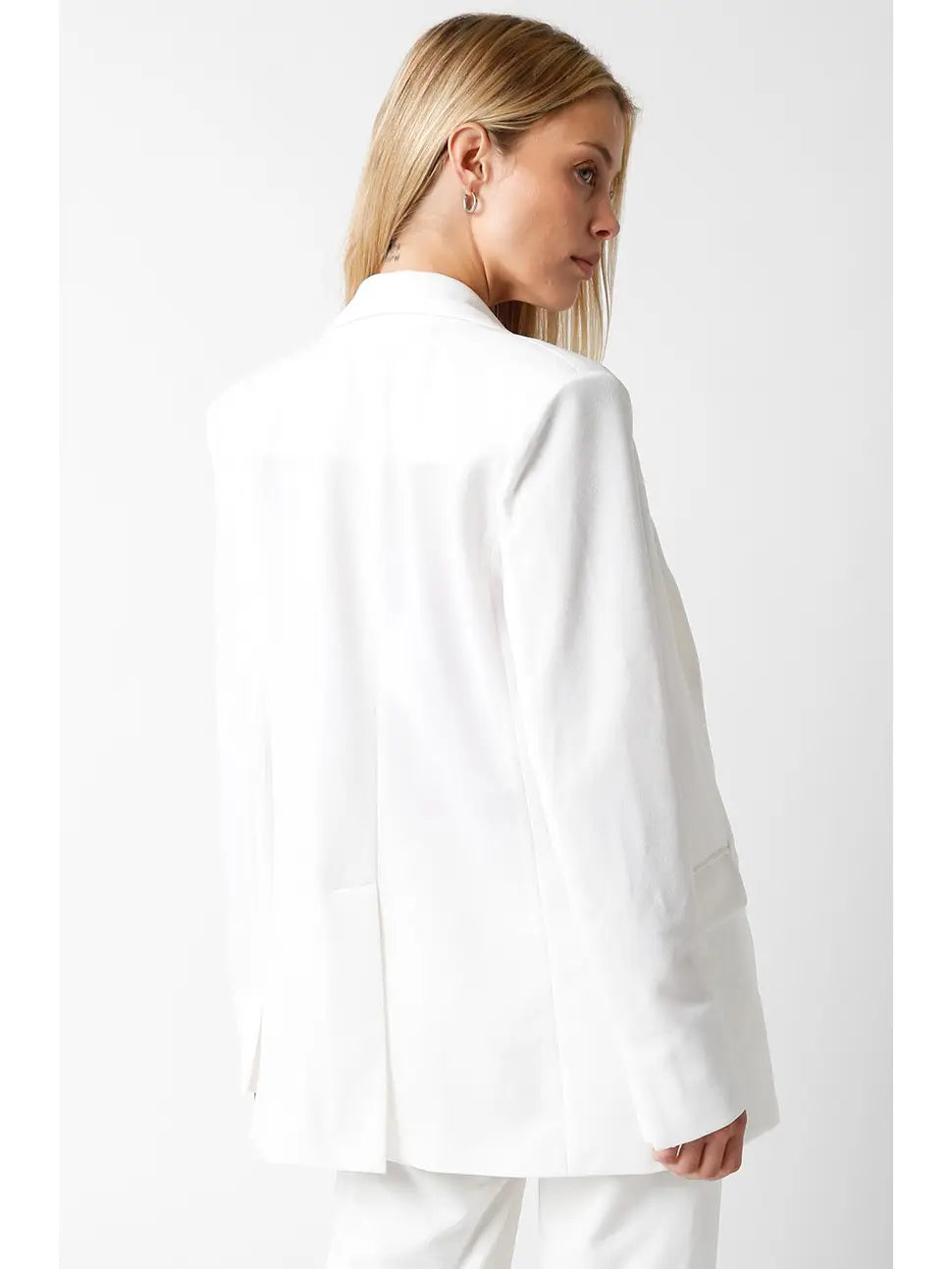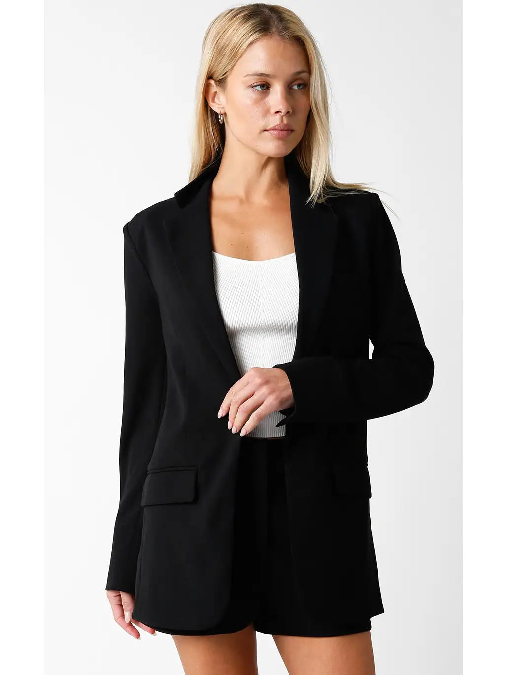 The Kelly Blazer delivers a tailored, sophisticated look with sharp lines and a structured fit. Crafted to elevate professional and casual ensembles alike, it offers a refined silhouette that enhances your presence. Perfect for layering, this blazer combines classic style with modern versatility, making it an essential piece for a polished wardrobe.