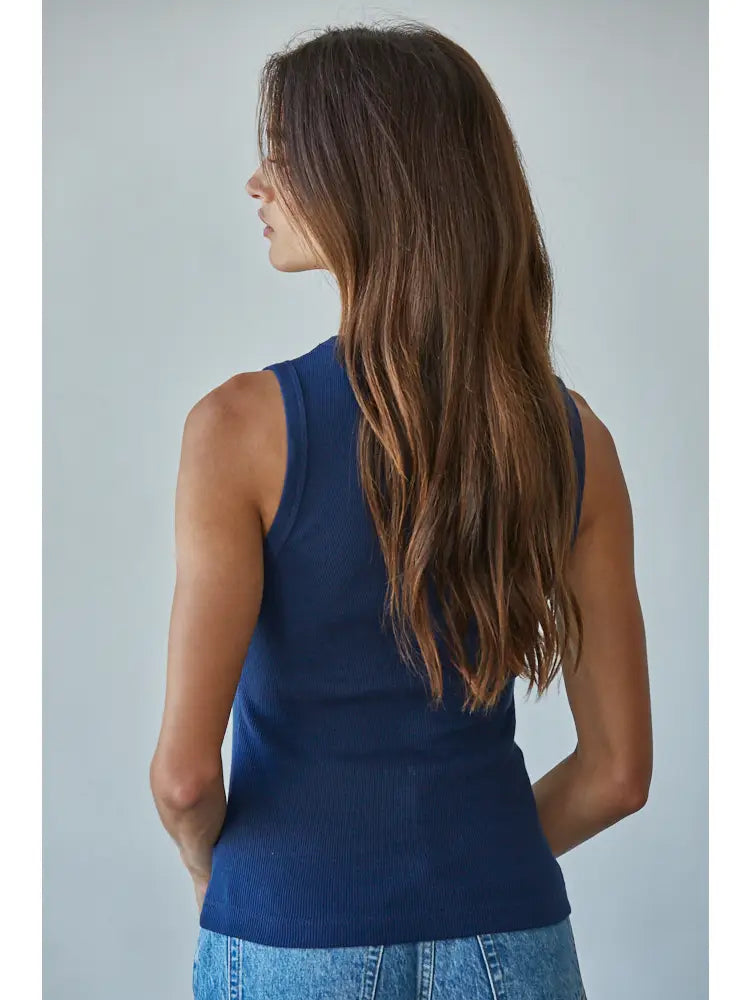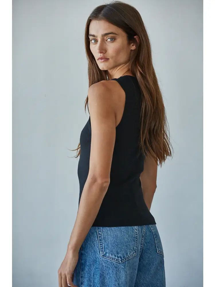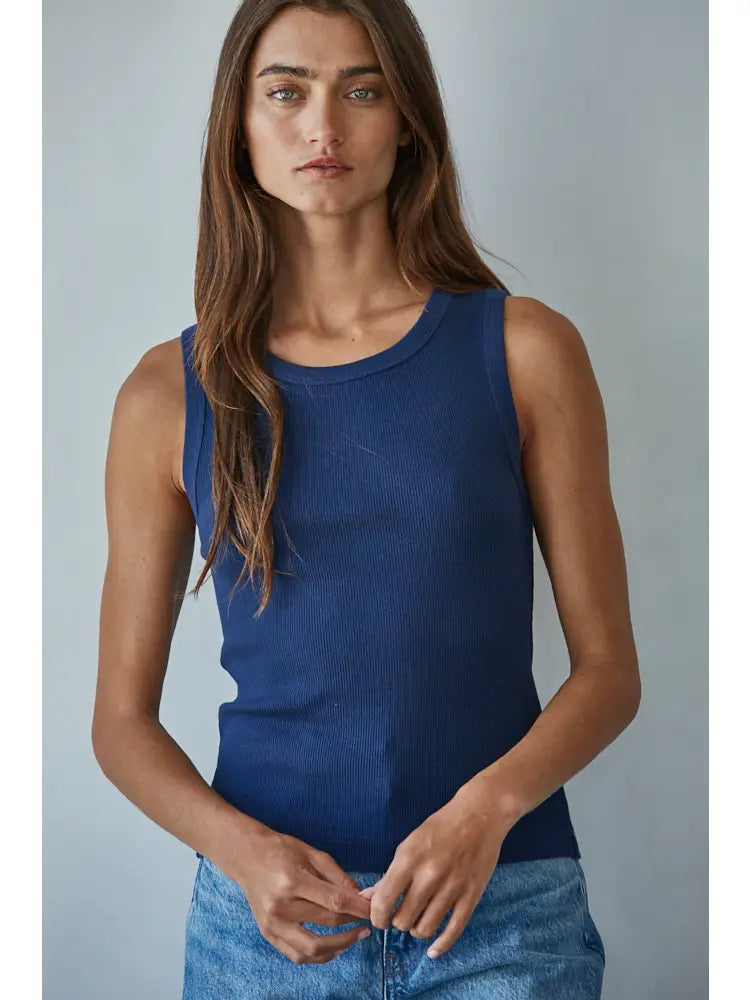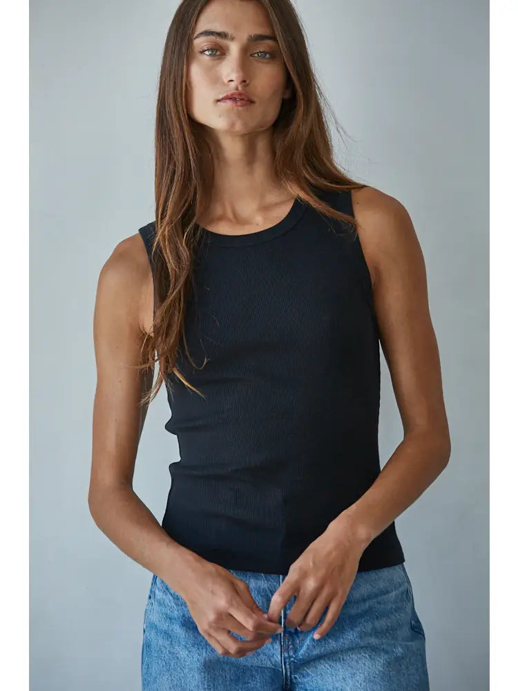 Knit Cotton Ribbed Round Neck Sleeveless Tank Top