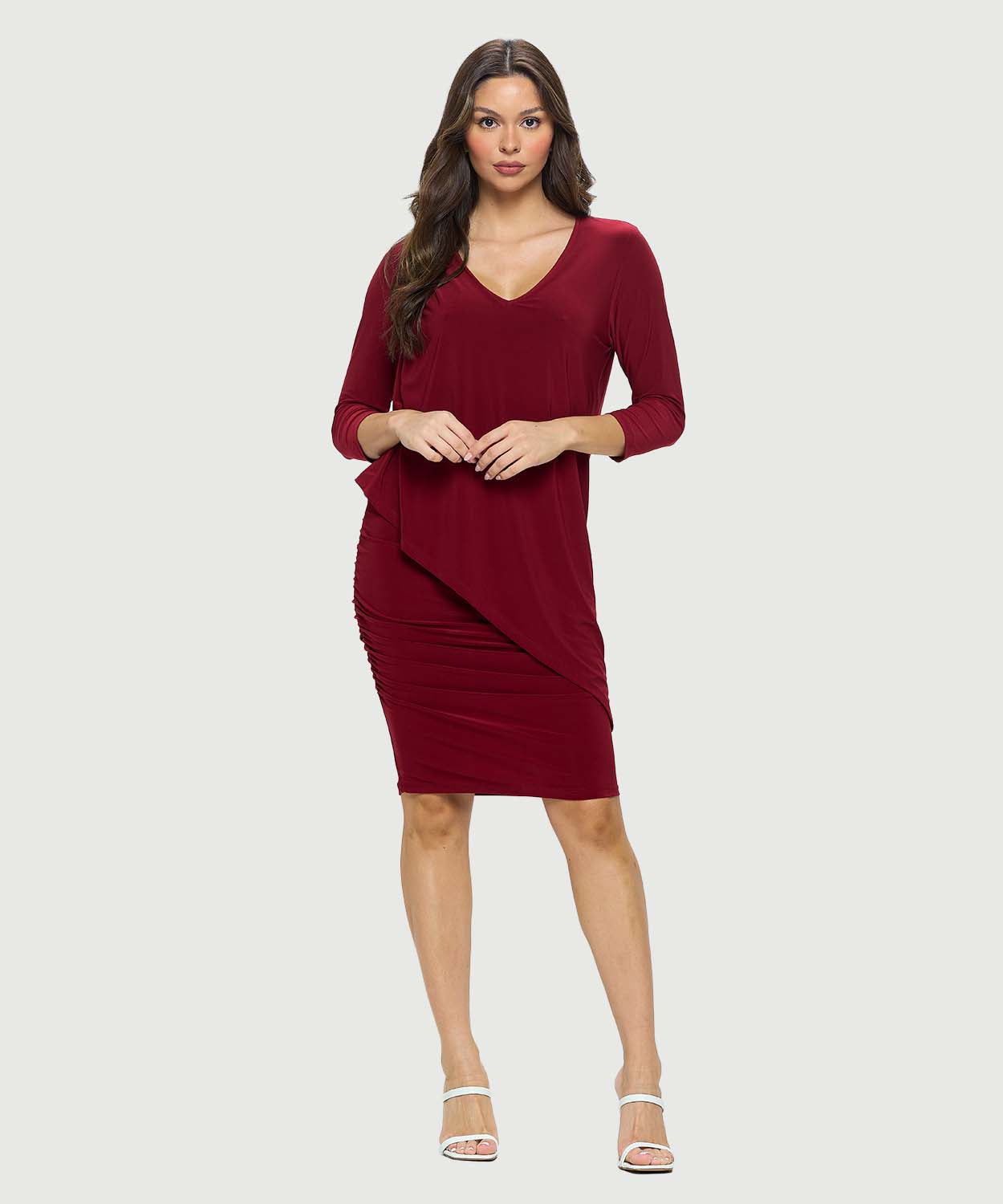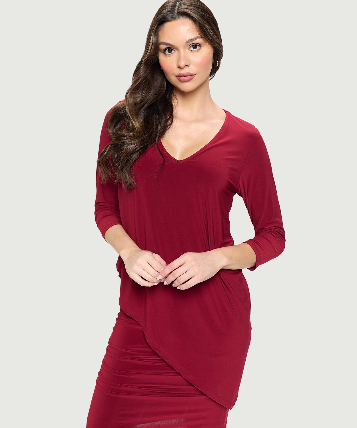 • DETAILS: V-neck, 3/4 Sleeve, Asymmetrical Top Layer