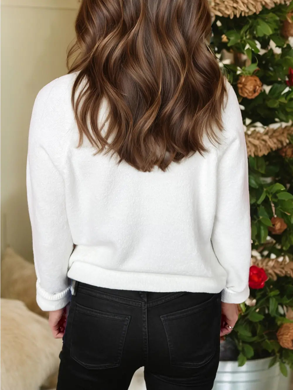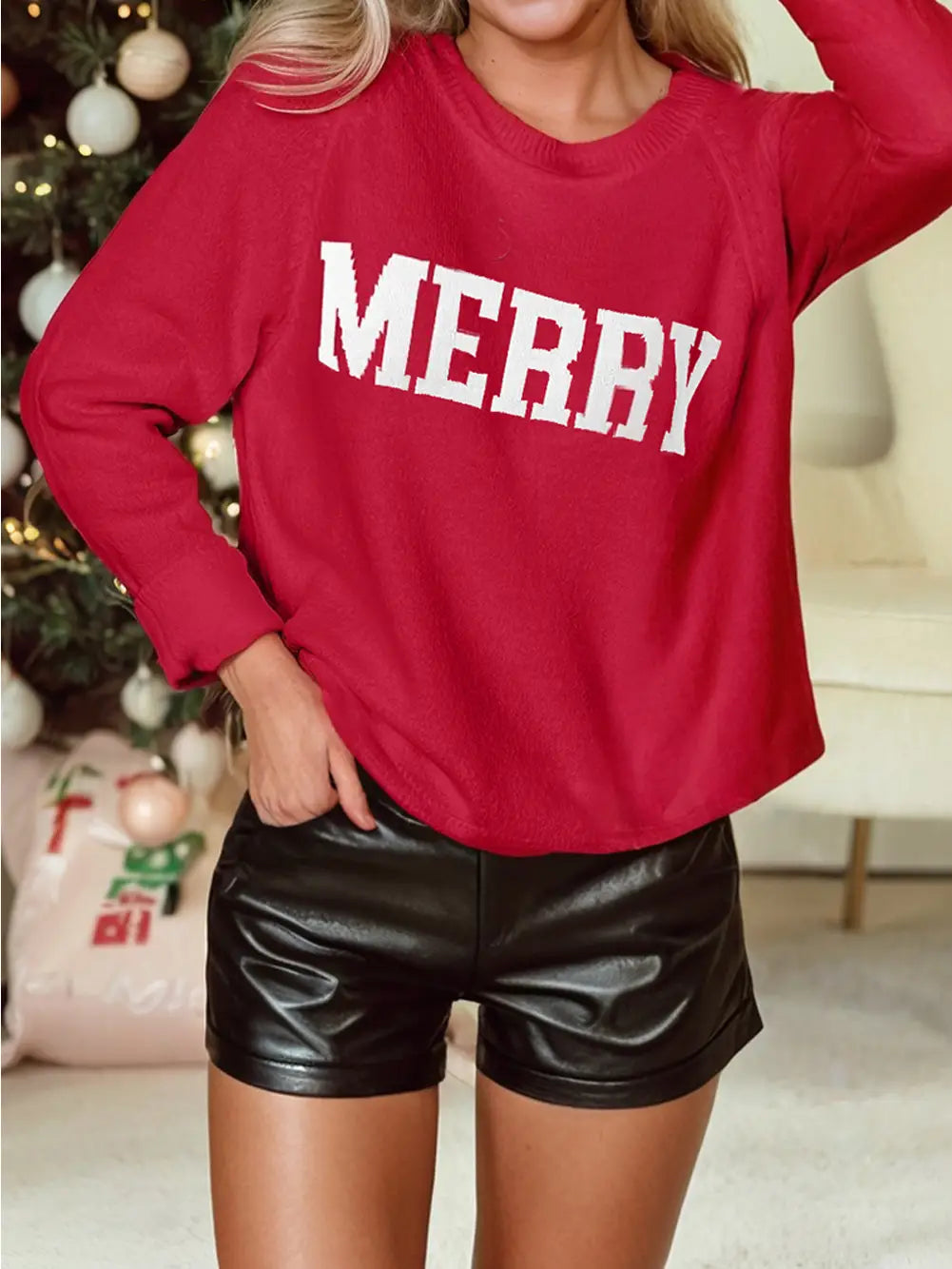 Elevate your seasonal wardrobe with this raglan sleeve sweater, featuring a distinctive merry letter pattern that captures festive charm. The relaxed raglan construction offers comfortable movement, while the thoughtful design details make it a versatile layering piece for holiday gatherings and everyday wear.