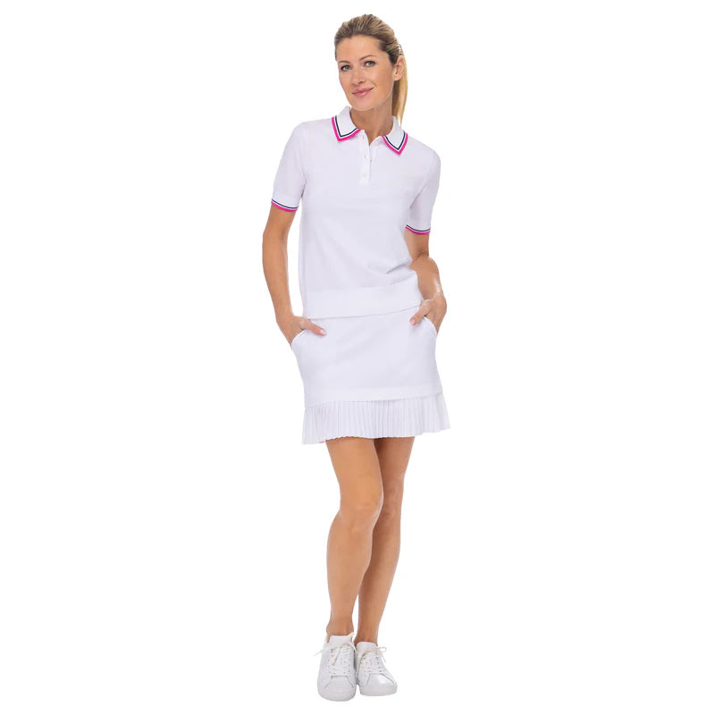 Our new Agnes Skort offers a classic style with a feminine twist. Crafted from ultra-stretch woven fabrication, it offers a crisp and polished look without sacrificing essential stretch for comfort and performance. The pleated bottom layer adds a feminine flare to the straight silhouette making it destined to be a best-seller. Featuring two front slash pockets, two back welt pockets, and a flat encased elastic waistband for easy pull-on style, it combines full functionality with supreme comfort and sophistication.